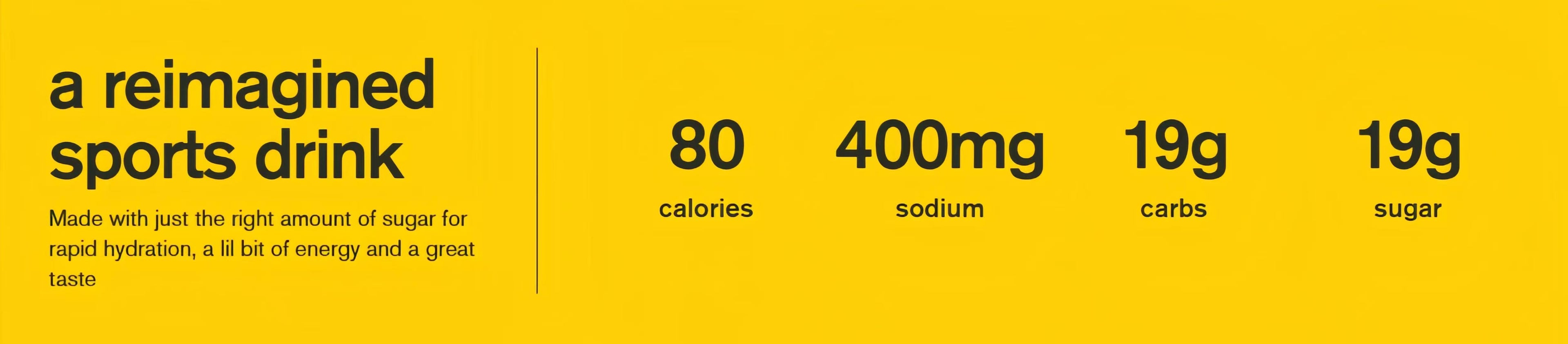Our electrolyte profile was developed to match what is in sweat - 400 mg sodium/L, 80 mg potassium/L, 100 mg calcium/L, 80 mg magnesium/L. We include the average amount of electrolytes lost in sweat, especially sodium, so your hydration reflects what your body actually needs. That balance helps your body absorb water faster and makes thirst a better guide during exercise.