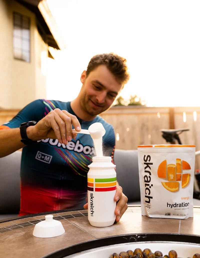 Skratch Hydration Sport Drink Mix was created to replace the electrolytes lost in sweat and to provide a little bit of energy when working out, without offending your palate or gut. We reimagined sports drinks, stripping ours down to the bare essentials and adding real fruit for flavor, to safely hydrate and quench thirst so athletes feel and perform better.